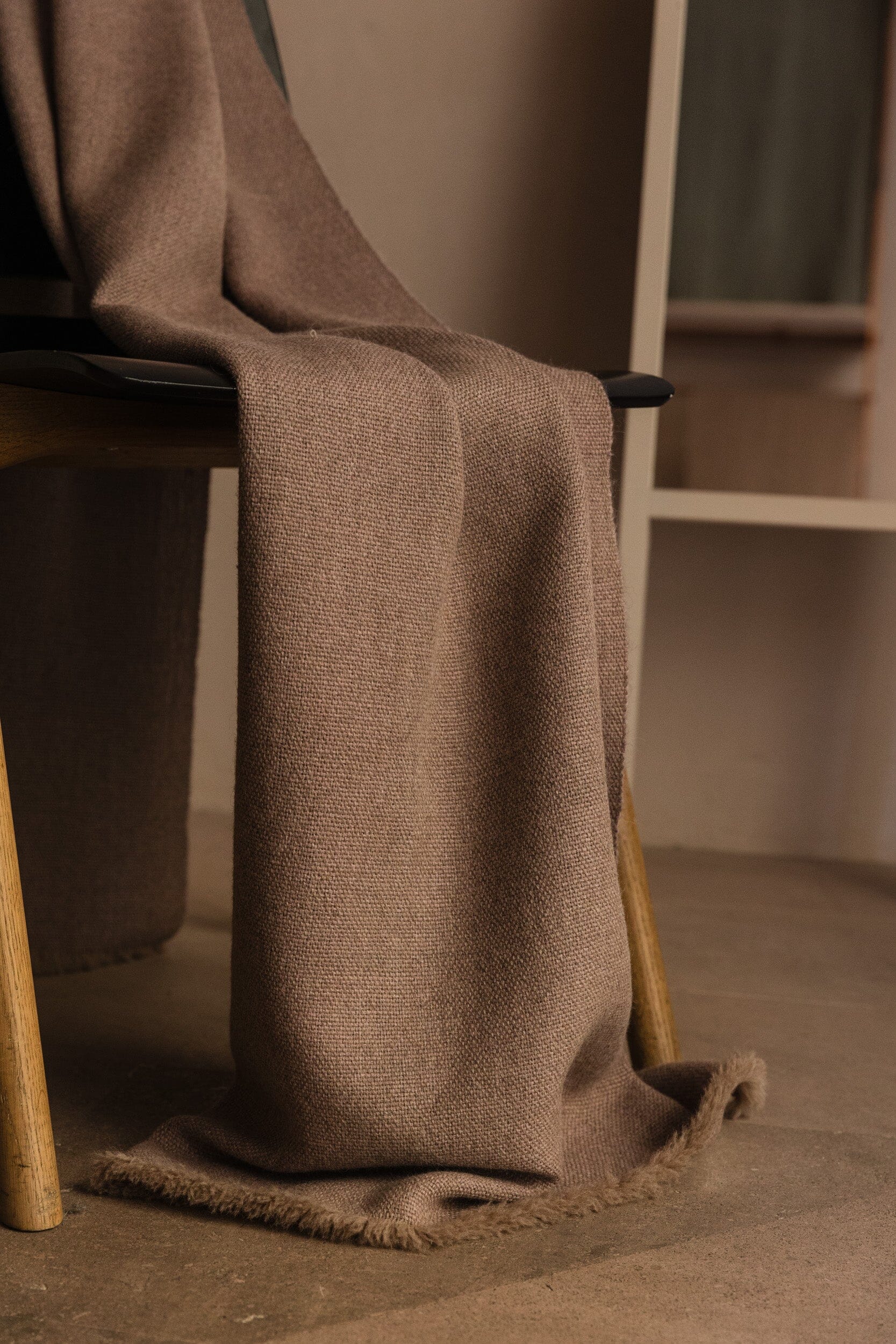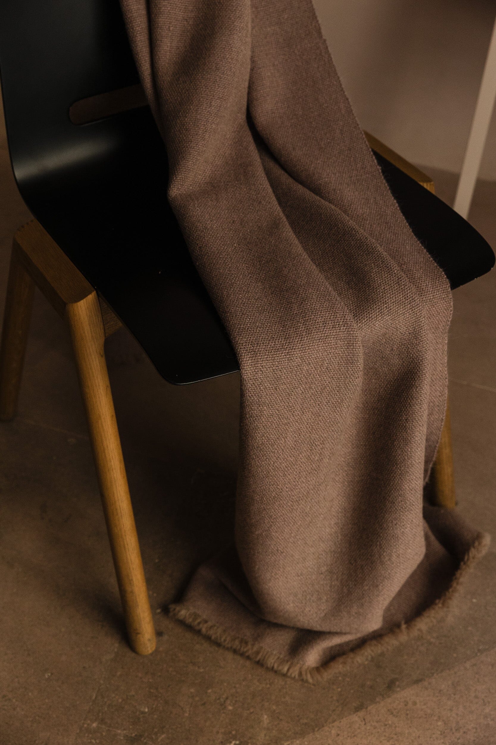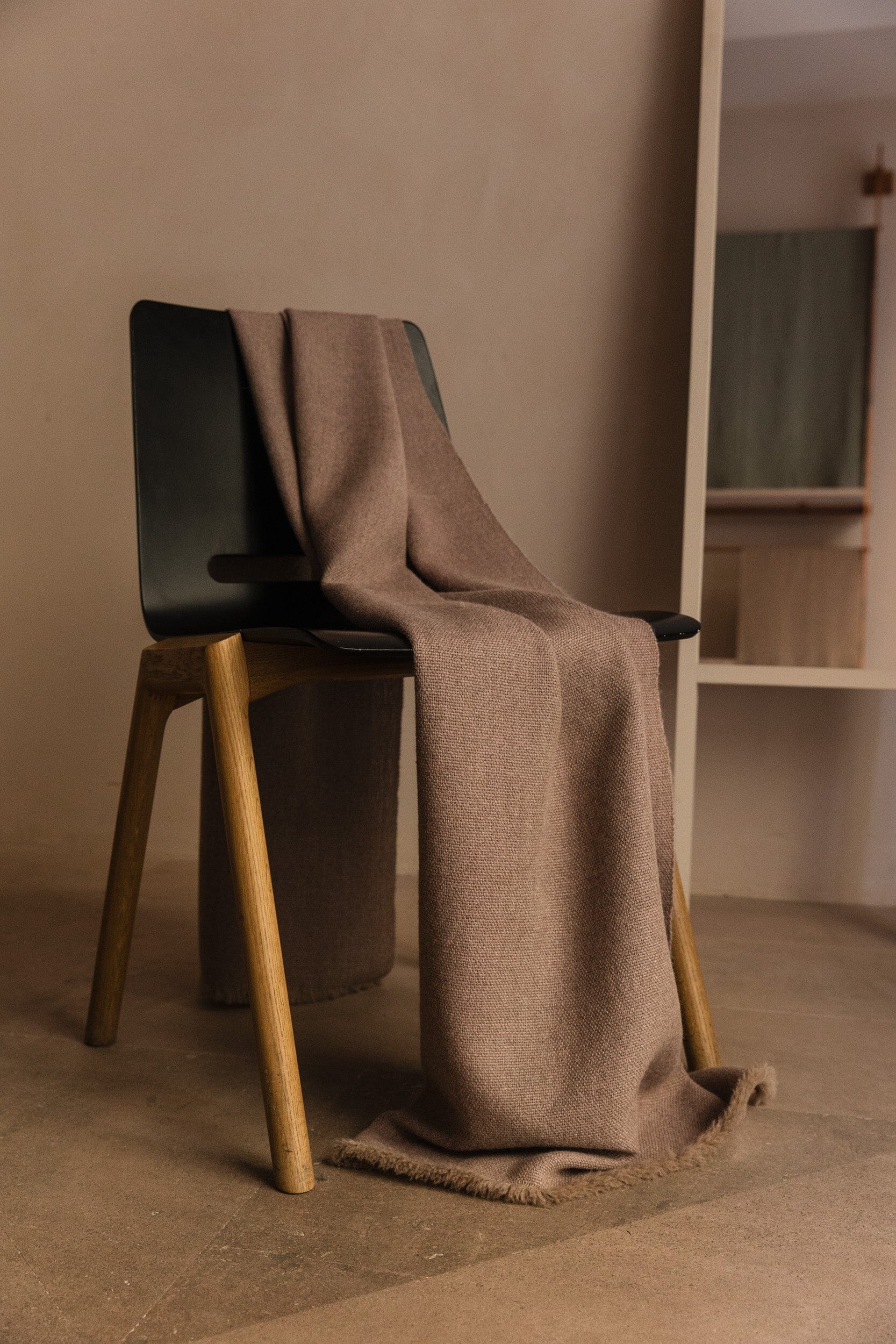 Pieza única en urdimbre de alpaca arena y trama de alpaca malva con tintes naturales.