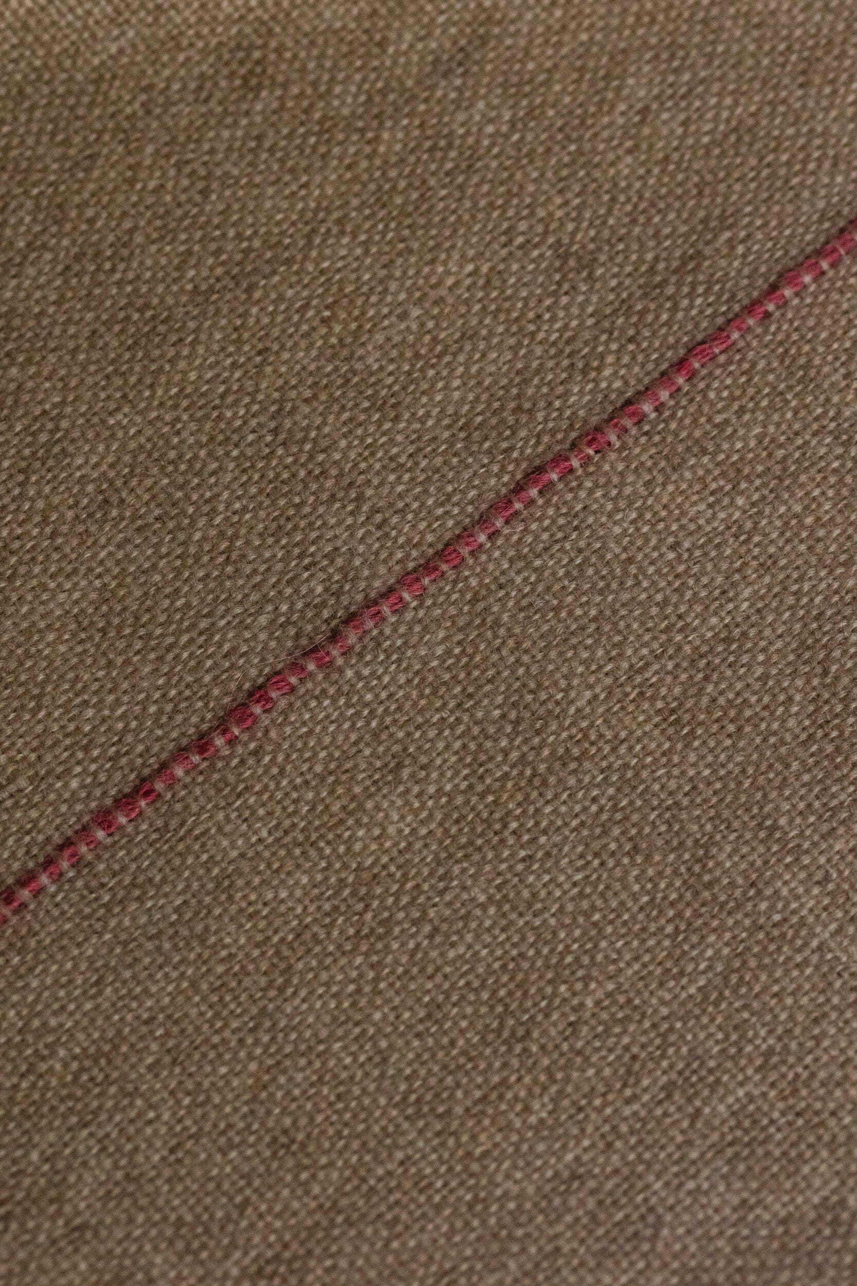Pieza única en urdimbre y trama de cashmere beige arena. Decorada con varias rayas finas de alpaca en tonos rosa, con tintes naturales.
