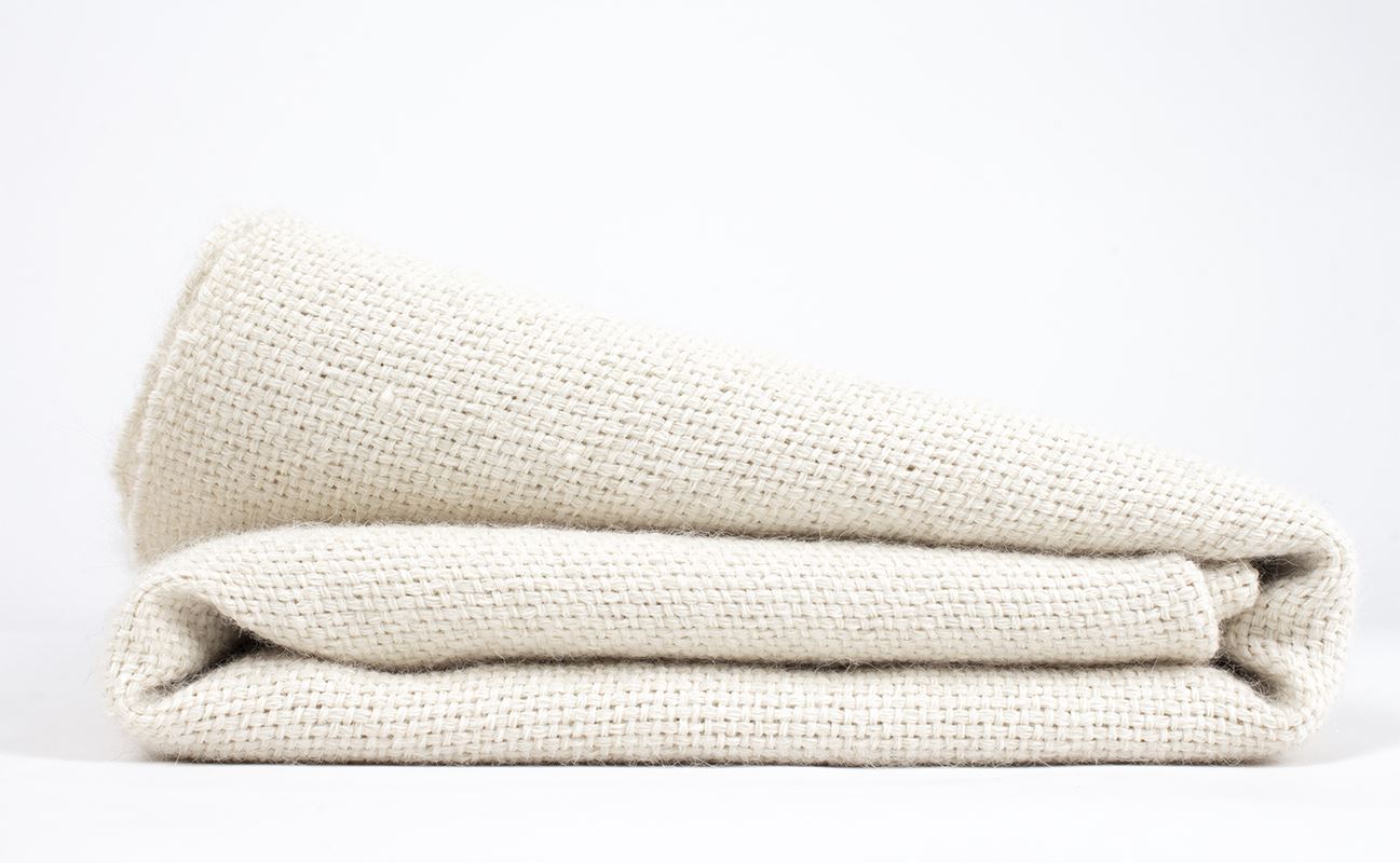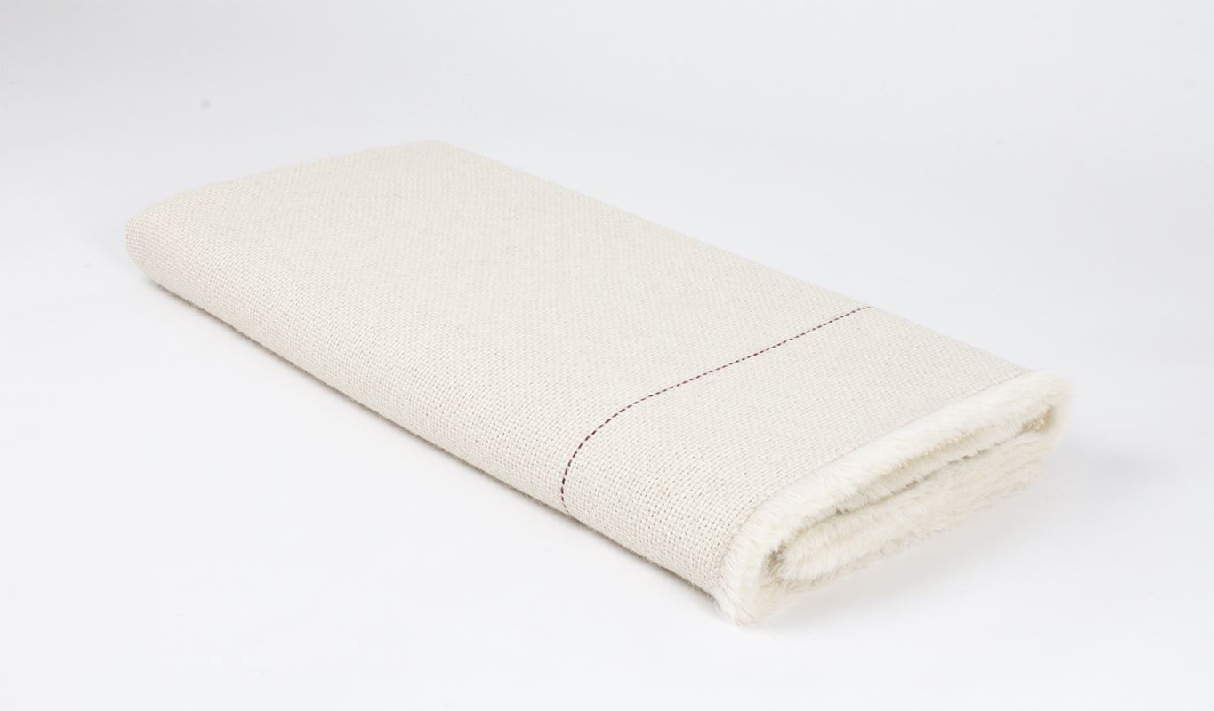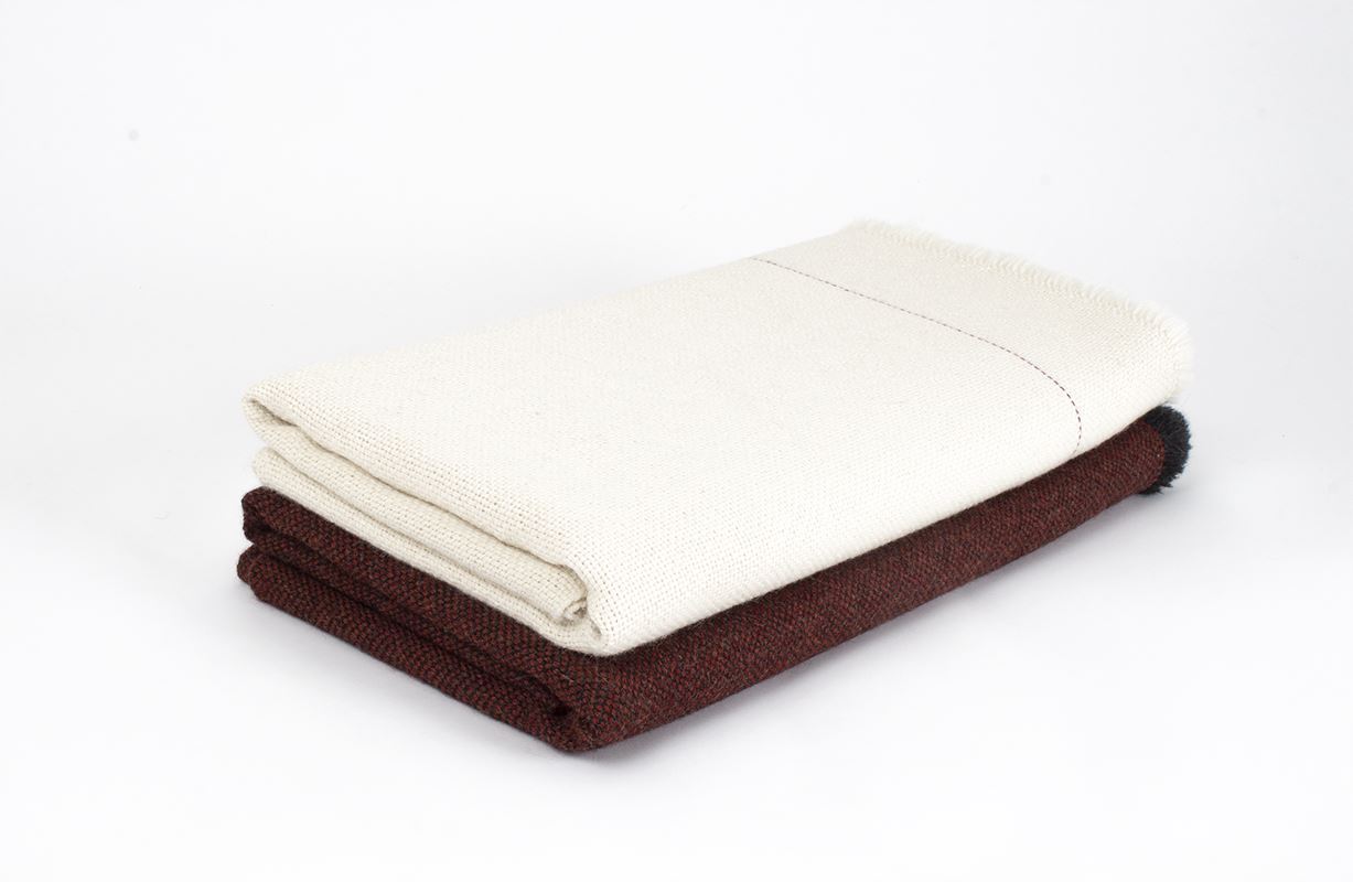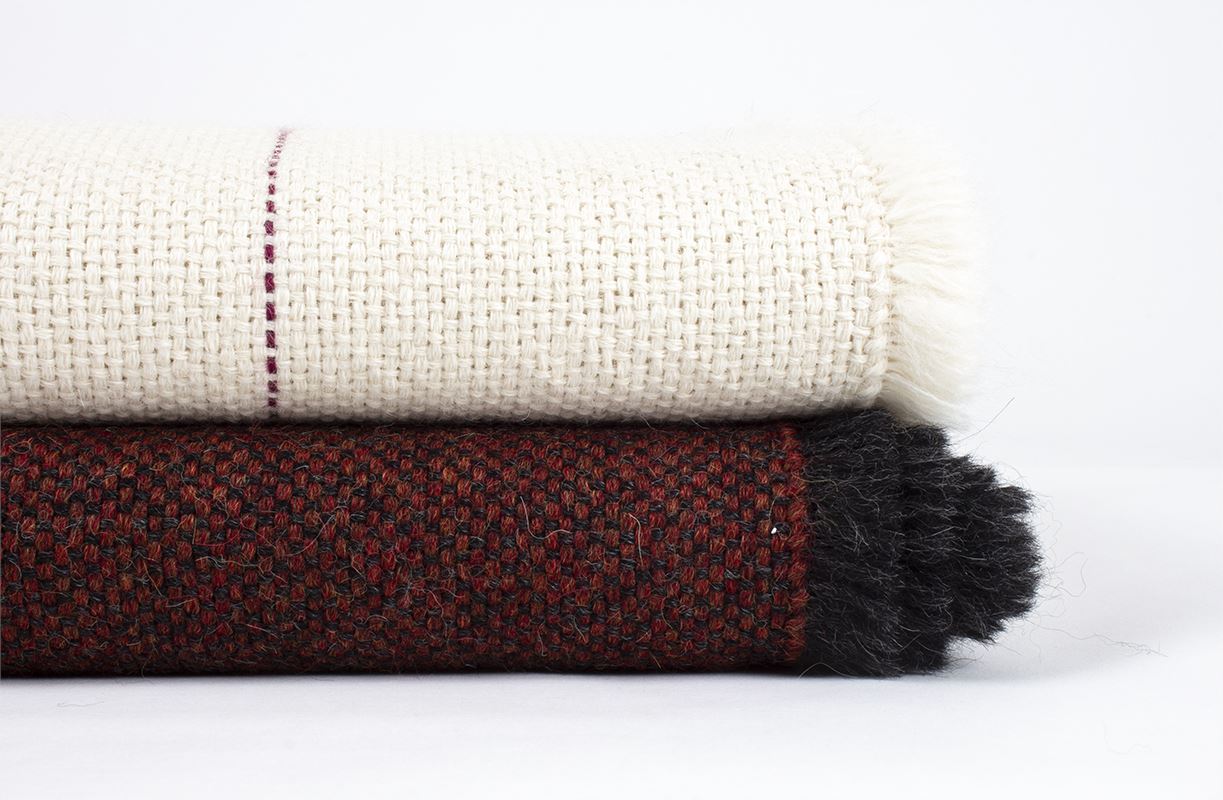 Exclusive piece, handcrafted from the finest natural fibers. Features a natural alpaca warp and weft, finished with a garnet stripe.
