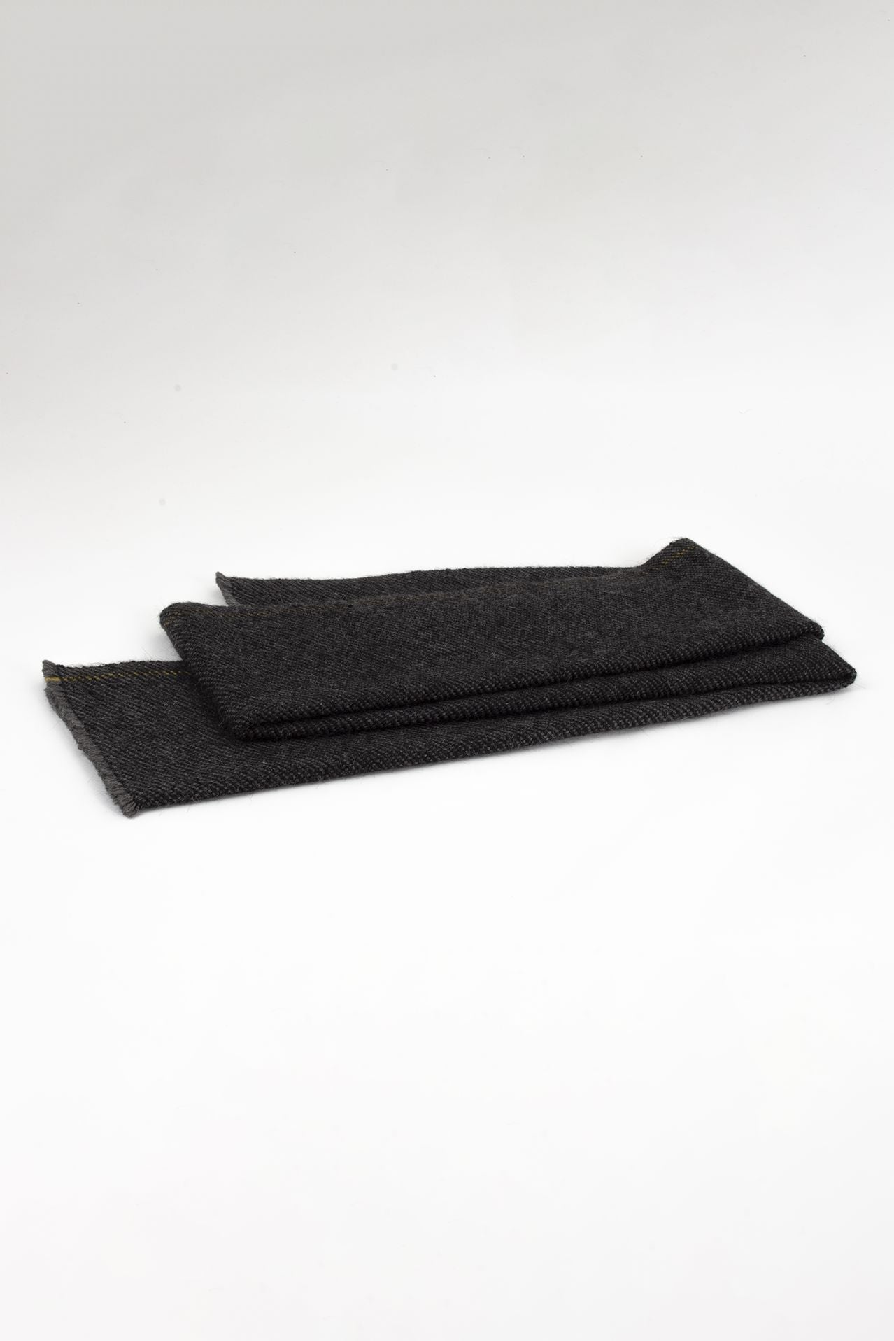 Unique piece with warp in charcoal grey alpaca and weft in anthracite alpaca. Featuring a mustard stripe detail.