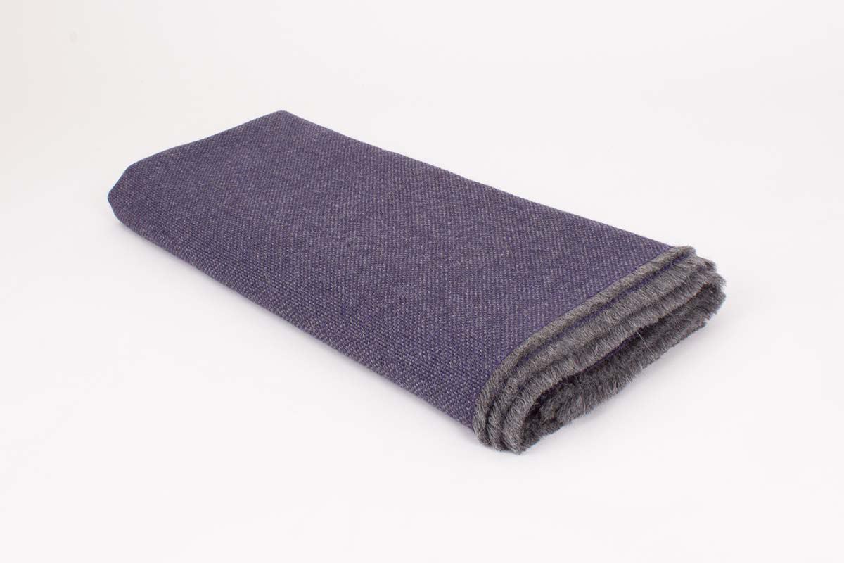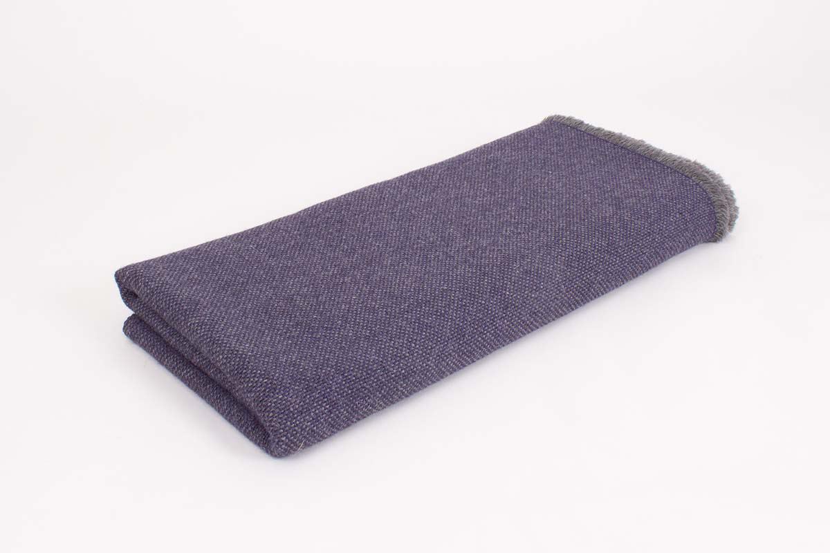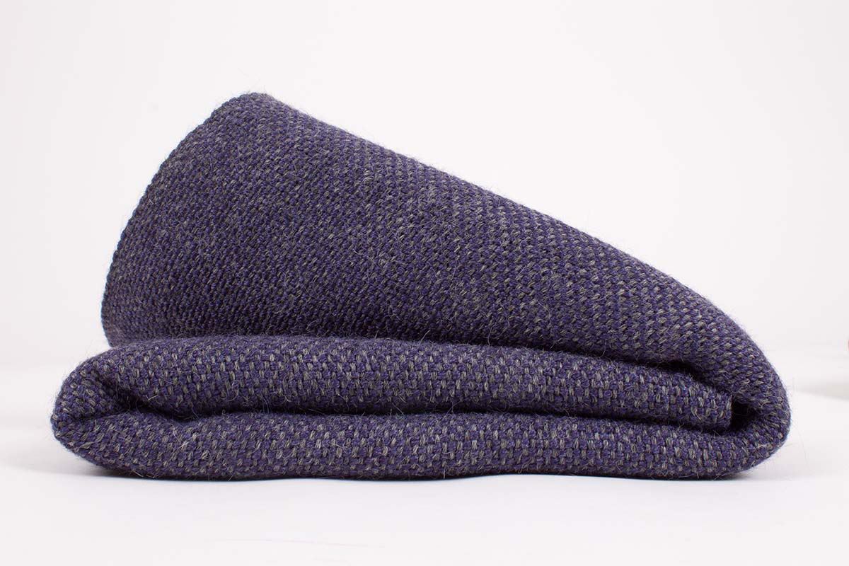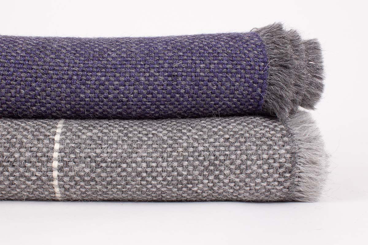 Exclusive piece, handcrafted from the finest natural fibers. Features a charcoal-grey alpaca warp and a bluish-purple baby alpaca and silk weft.