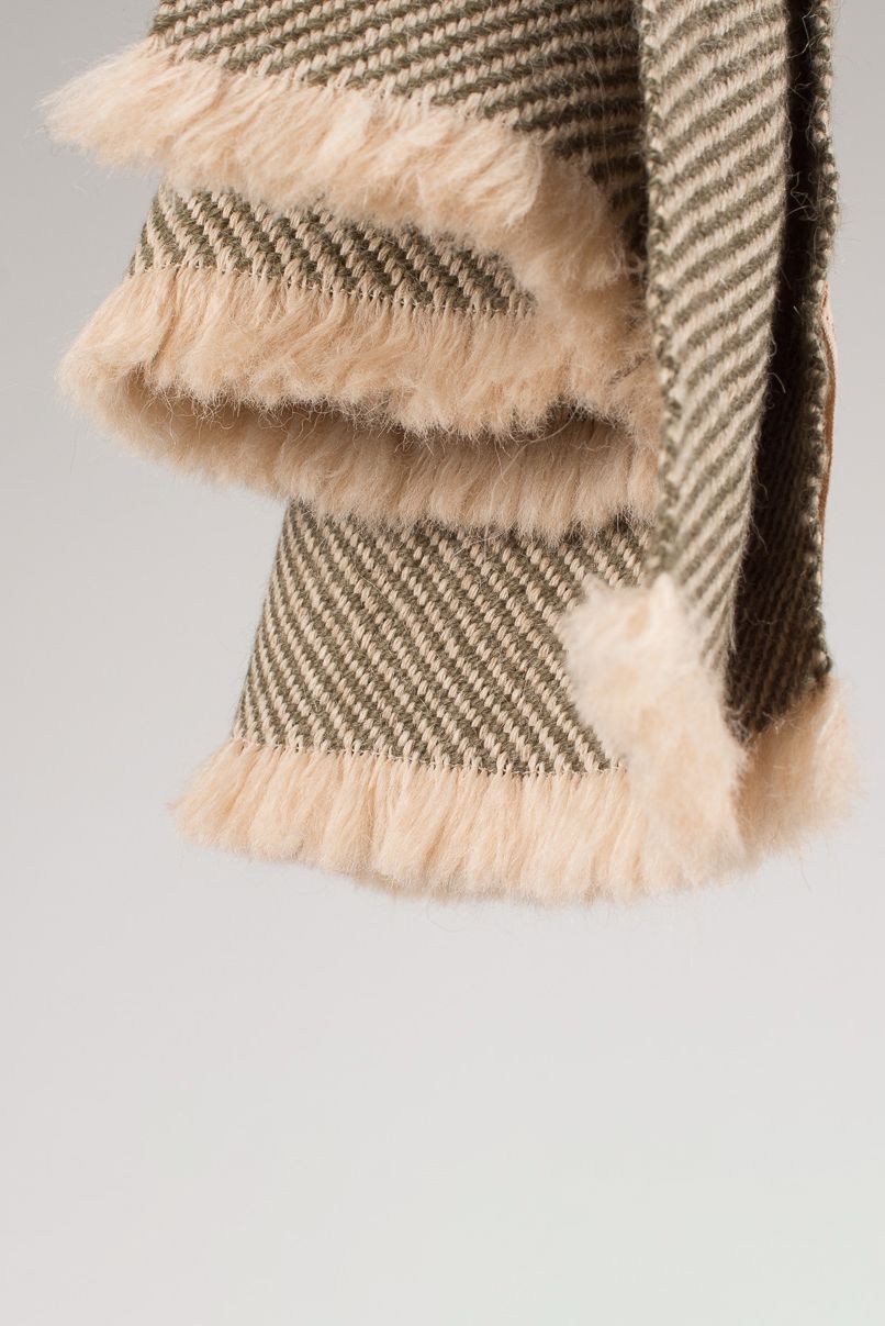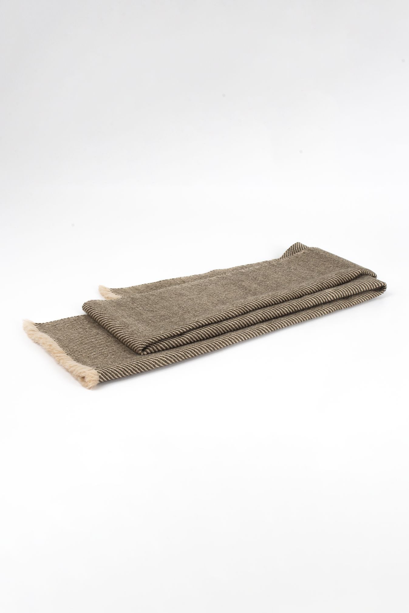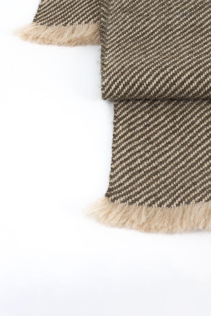 Unique piece with warp in toasted walnut alpaca and weft in olive green alpaca.