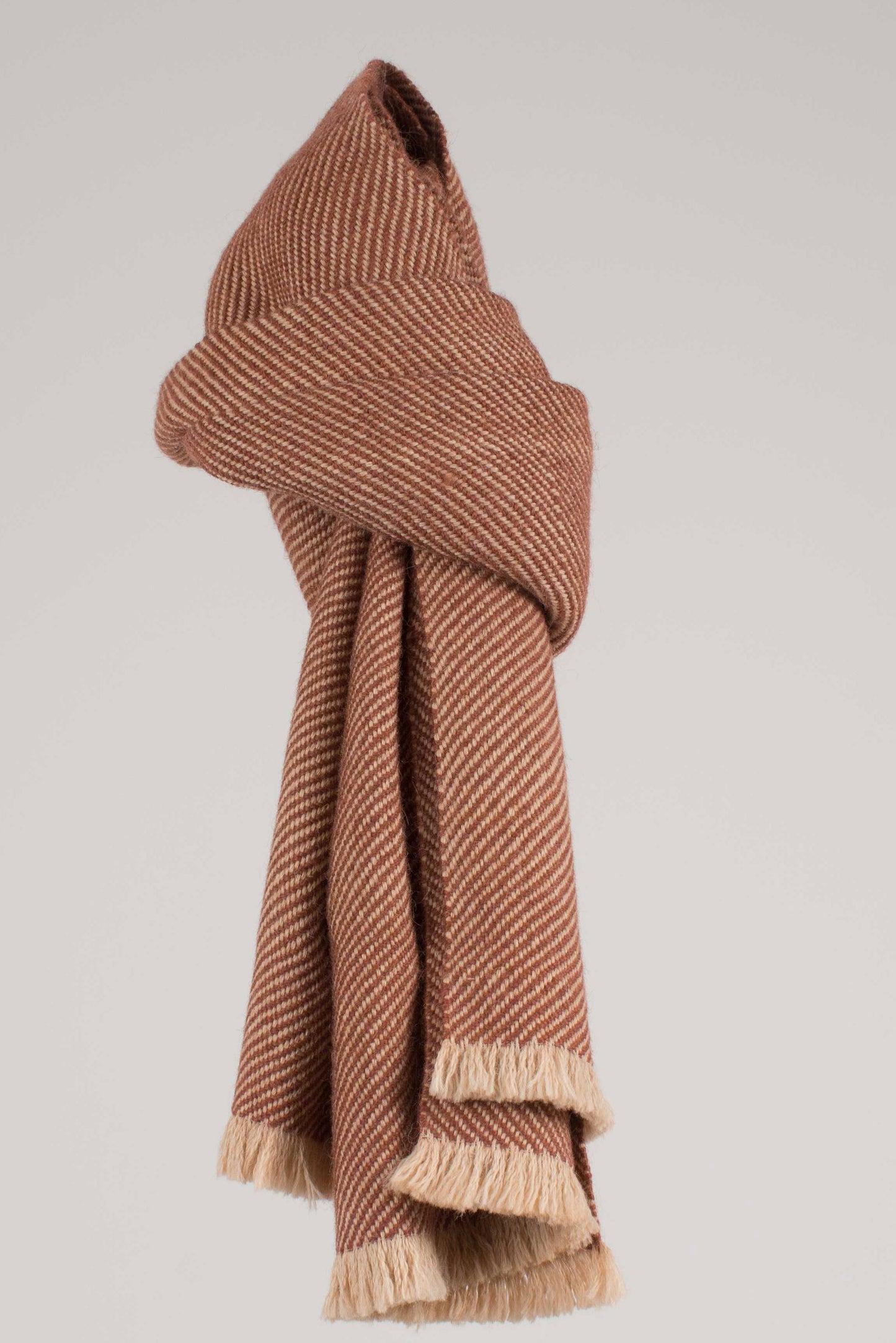Unique piece with warp in toasted walnut alpaca and weft in alpaca yarns dyed with natural Lampaya castellani dyes. Hand-spun by an Aymara spinner from northern Chile.