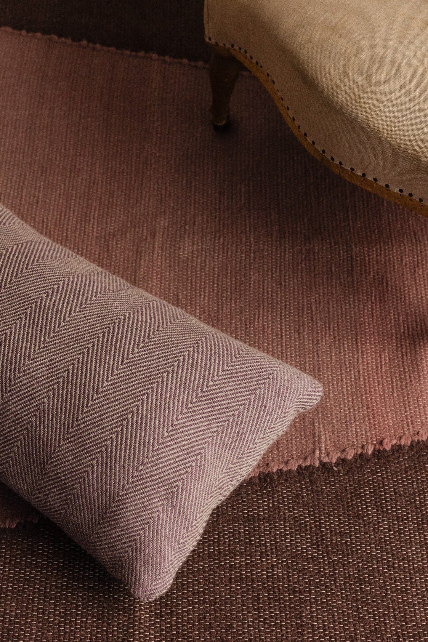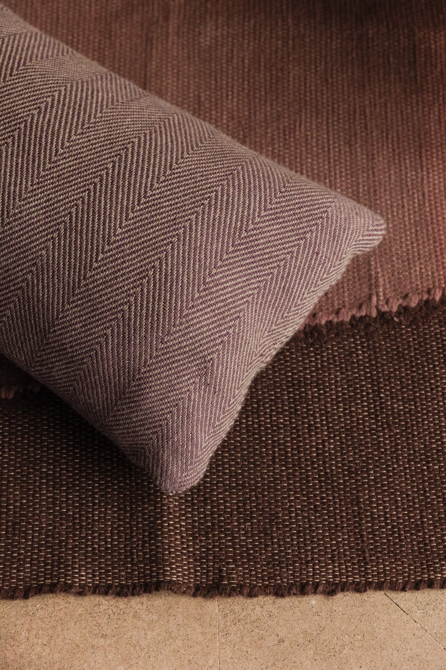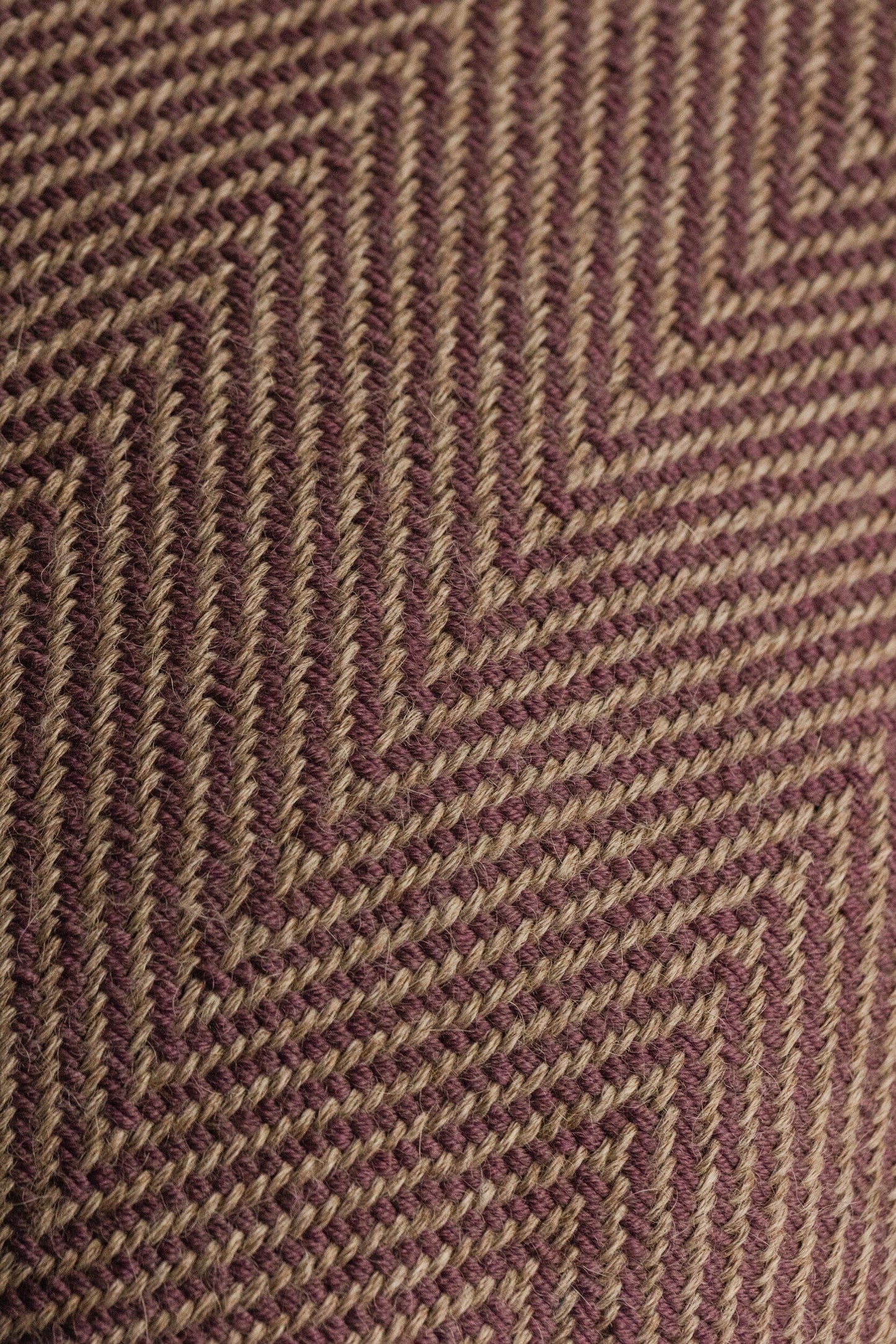 One-of-a-kind piece in herringbone with a sand alpaca warp and a purple merino wool with silk weft.