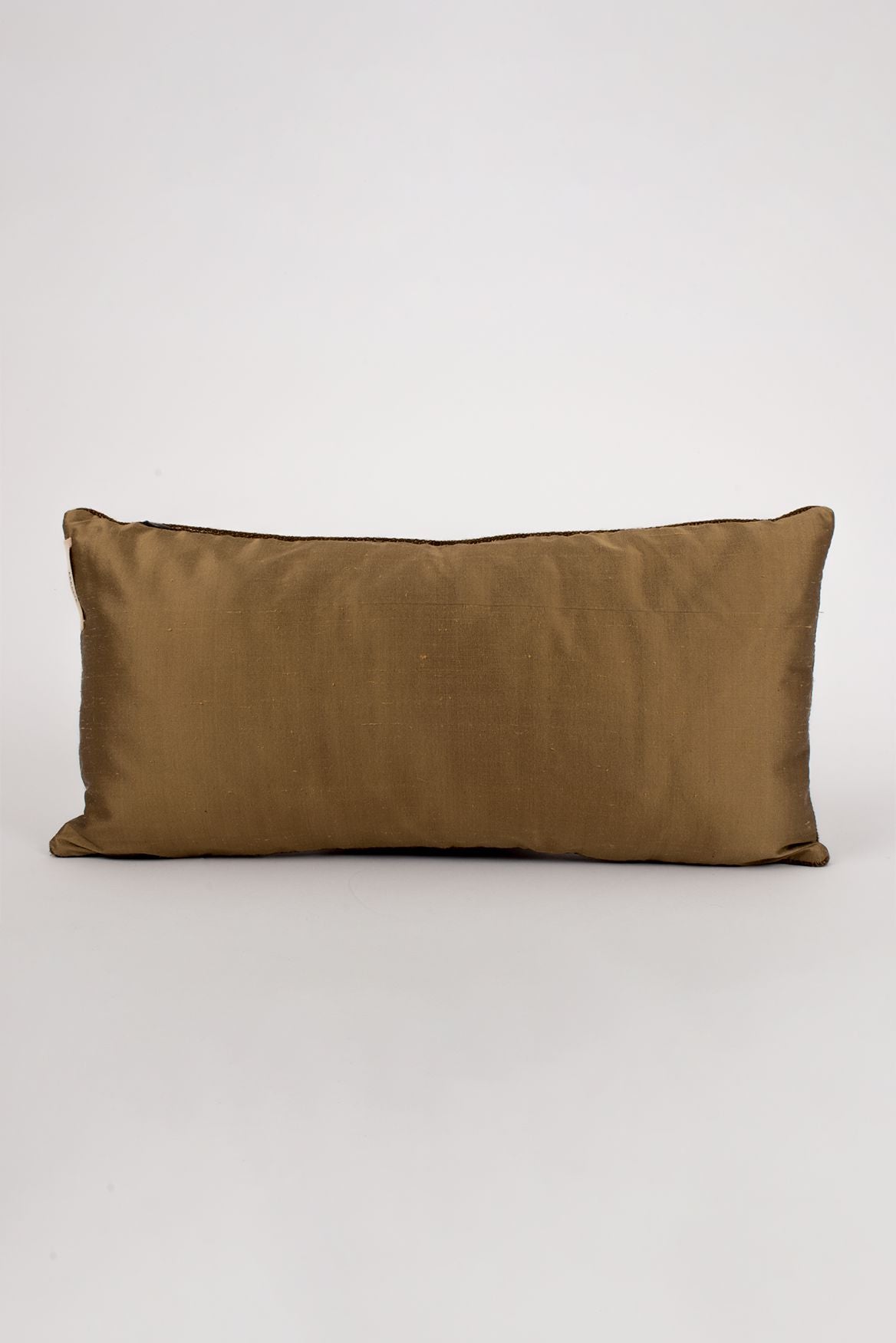 One-of-a-kind piece with a hunter green linen warp and a multicolored linen weft. Back in green silk.