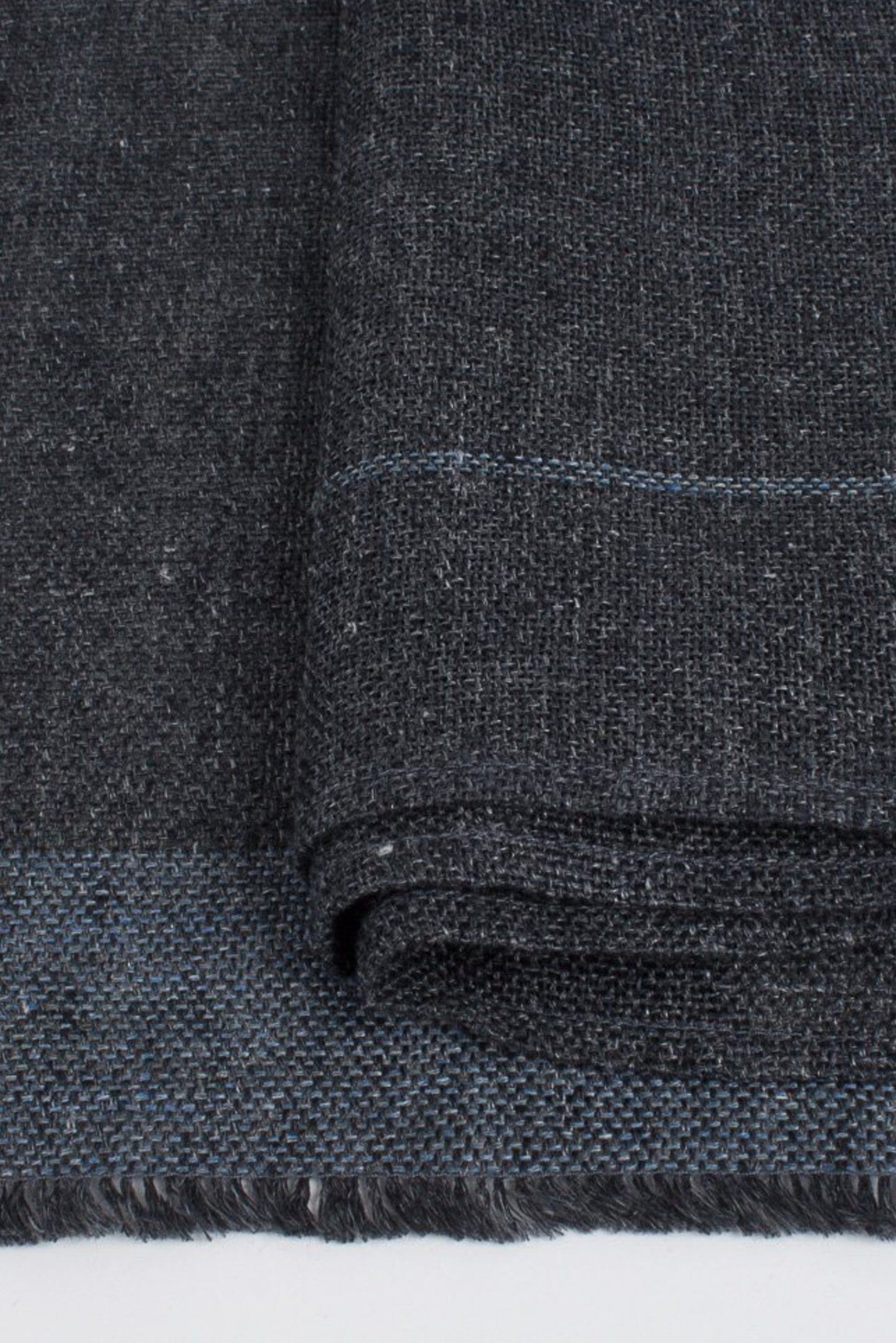 Unique piece with a charcoal-grey linen warp and weft, decorated with a melange-blue stripe.