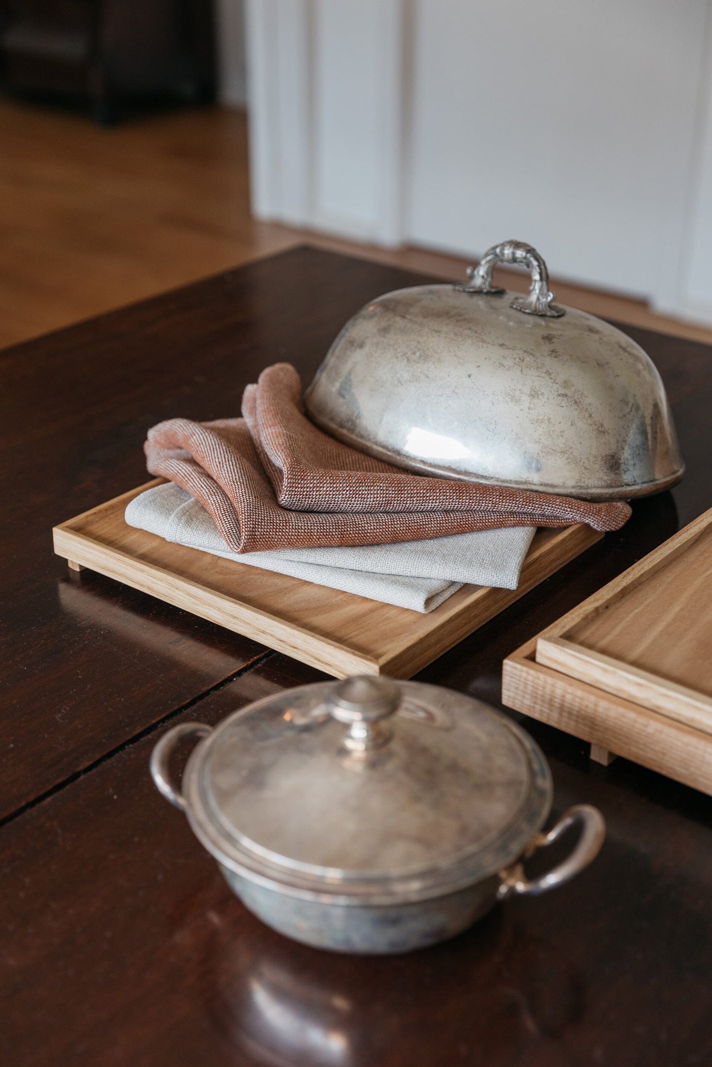 Unique piece with a grey linen warp and a rust-coloured linen weft. Finished with a hem.