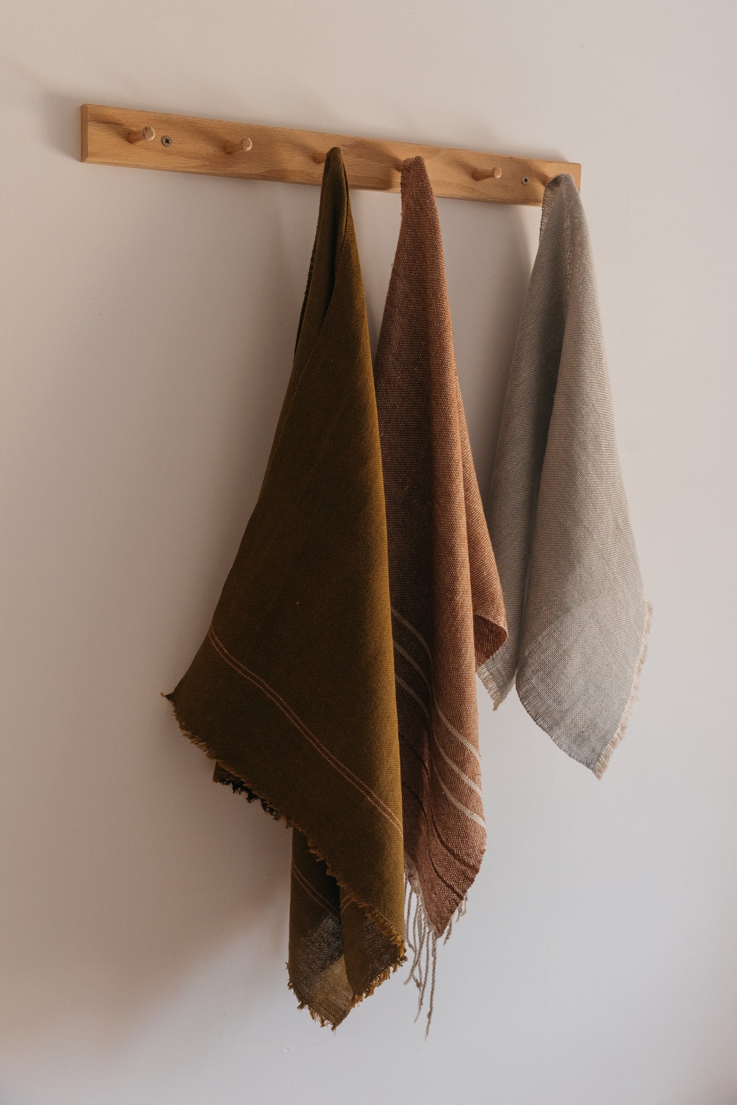 Every ÁBBATTE piece is crafted entirely by hand; from dyeing the fibres and weaving them on traditional looms to the most meticulous finishing touches. This artisanal process takes time, but it allows us to care for every detail. We are proud that all our artisans come from Collado Hermoso and its surroundings in Segovia; most of them women who keep this craft alive.