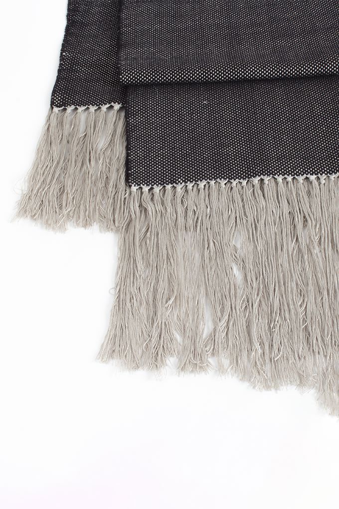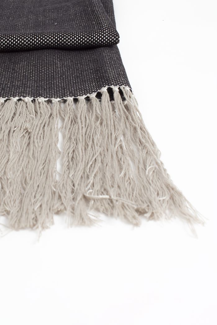 Exclusive piece handcrafted with the finest natural fibres. Warp in ash grey silk and weft in black silk.