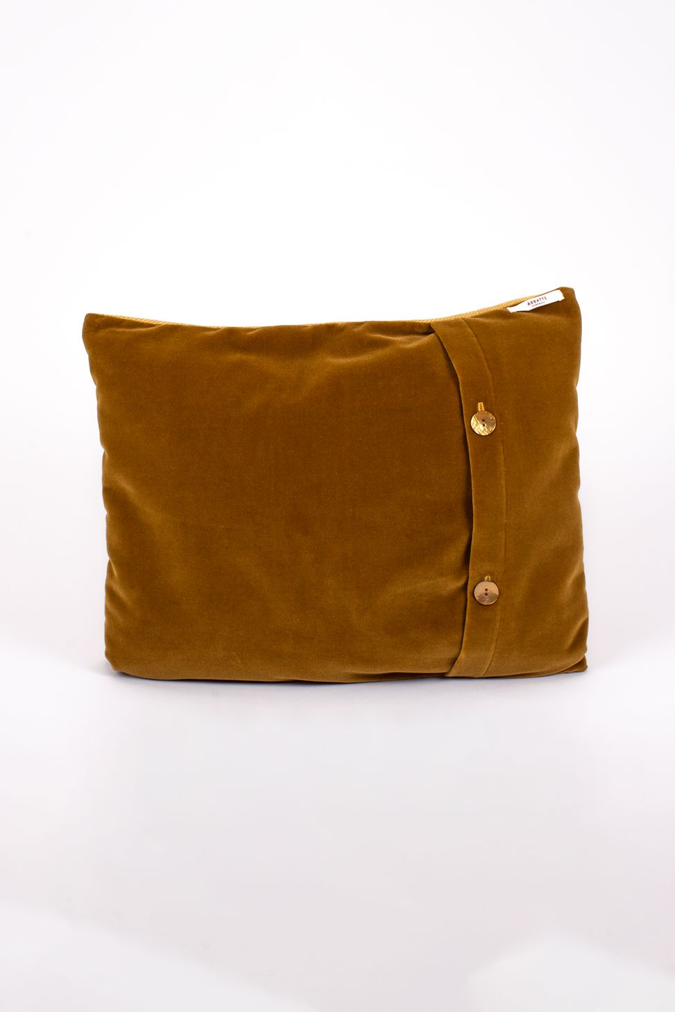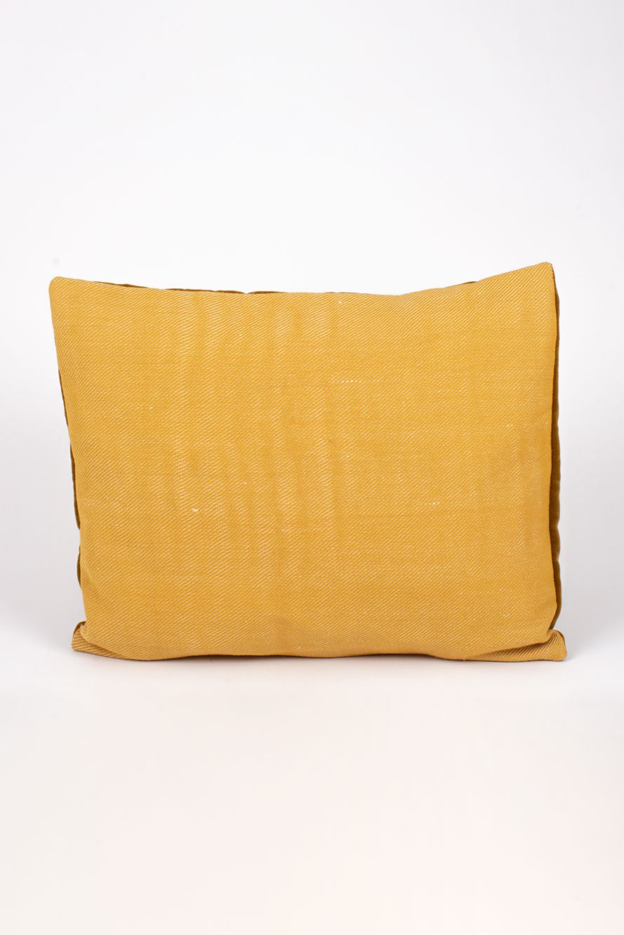 Unique piece with white silk warp and yellow silk weft. Back in mustard yellow velvet.