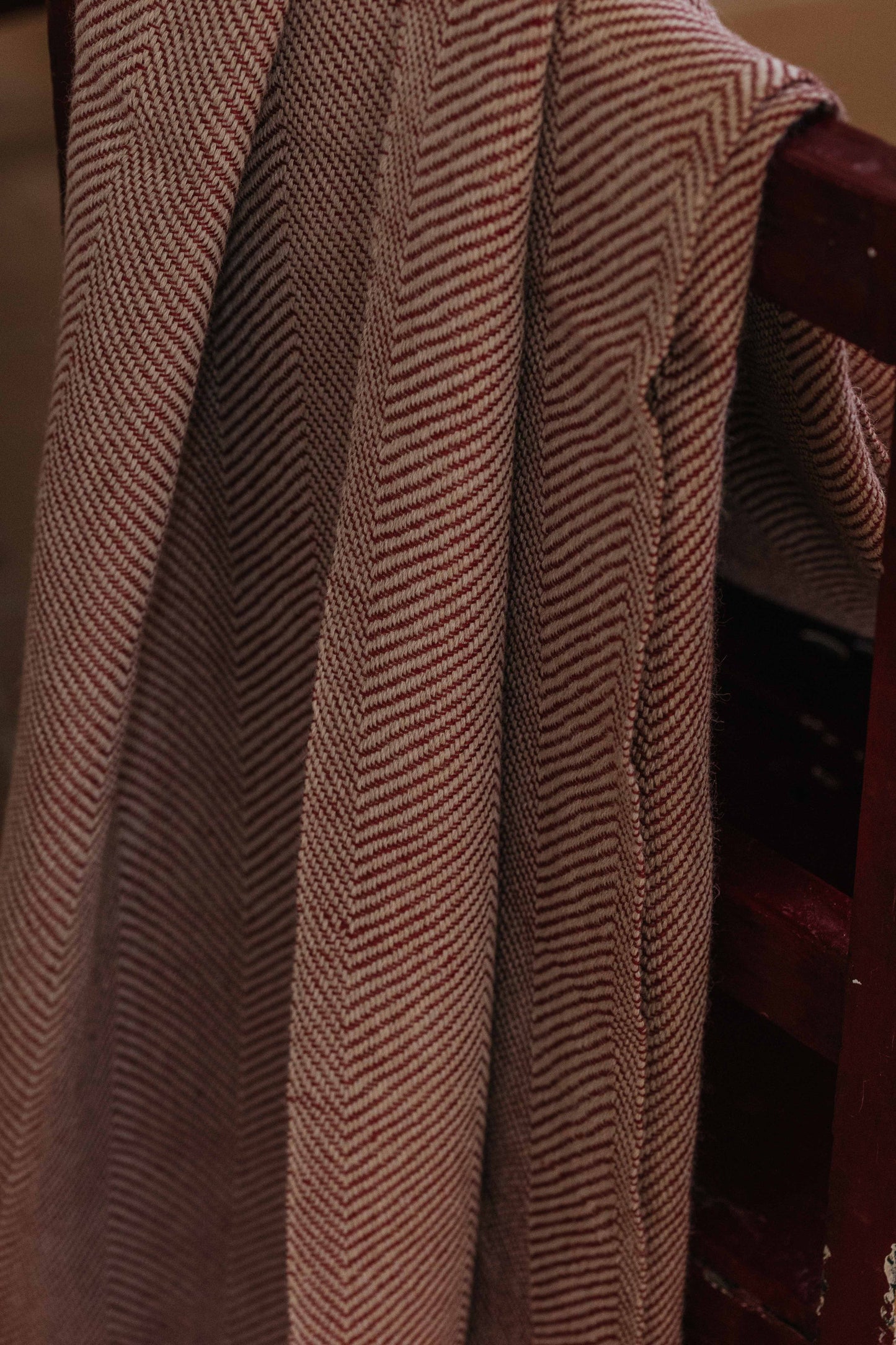 Pieza única con urdimbre de alpaca nuez tostada y trama de lino color rosa fresa.